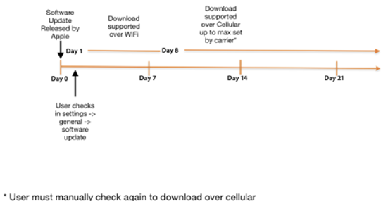 So why can’t we download over cellular the latest software a soon as it gets released by Apple? It all comes down to how the device/user checks for updates, which dictates how quickly you can download it over cellular.