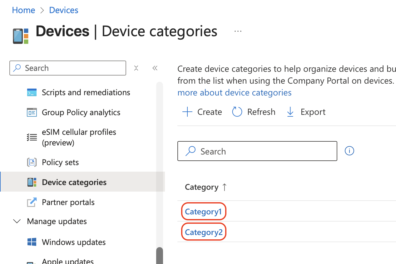 2. Intune Device Category Names