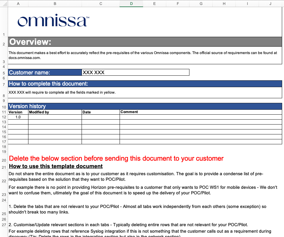 I’ve also created a comprehensive prerequisites spreadsheet that captures all technical requirements in one place. It allows customers to record key configuration details as they work through the checklist. Once complete, the same document can be used as an as-built record, reducing duplication and saving time.