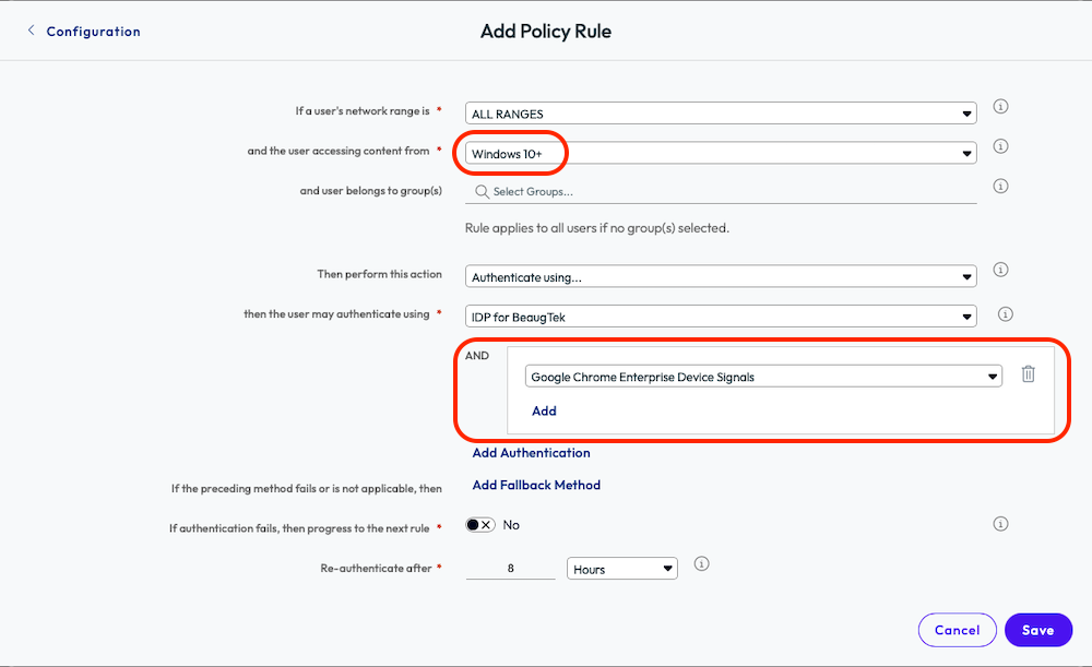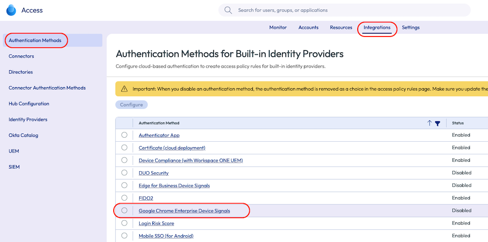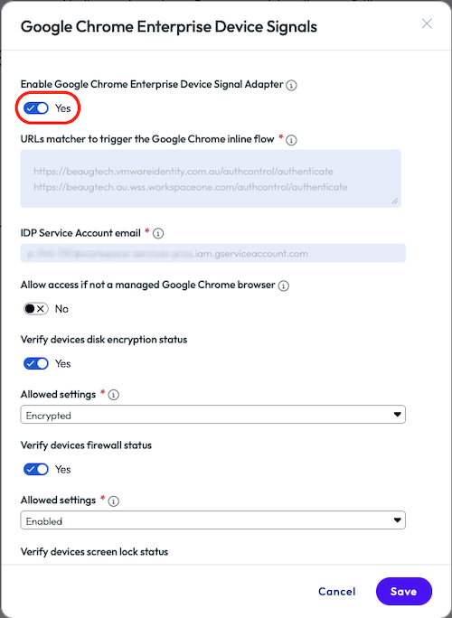 - Add Google Chrome Enterprise Device Signals as a second authentication method