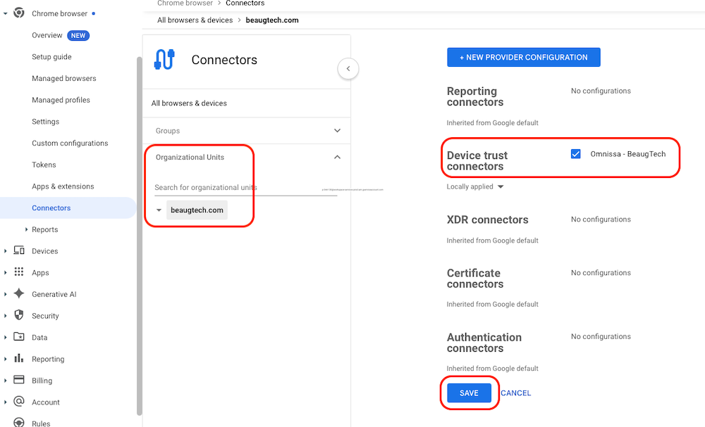 Configure the device trust connector in the Google Admin console: